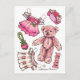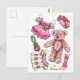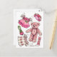 Pink Petunia Teddy Bear Paper Doll cute Postcard