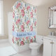 Beautiful floral shower curtain features pink roses and petunias and sky blue daisies. At the bottom is a wide band of blue with white polka dots where you personalise it with your names. There are lots of other coordinating items in the shop so be sure to take a look around.