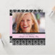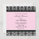 Custom Photo 20th Birthday party invitations in elegant and pretty light pastel blush pink, black and white classic floral damask pattern. Add your name, photo, and party details for a unique and stylish 20th birthday party invitation.