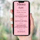 Birthday party menu card. Personalise and add a name, age, date and the menu. A blush pink background.