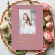 Pink Photo Girl First Communion Rose Gold Foil Invitation.