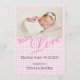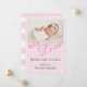 Sweet girly “Baby Love” typography and script with pink plaid on the front and watercolor pink stripe on reverse side. Area for newborn photo. Add baby name and proud parents and you have an adorable birth announcement to ‘” introduce your sweet baby girl. Congratulations!