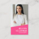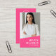 Hot Pink Contemporary Photo QR Code Logo Vertical Business Card. This vibrant vertical business card is designed for corporate professionals, small business owners, freelancers, and consultants who want a bold, modern look. The front features a striking hot pink or magenta background with crisp white fonts, showcasing your photo, company logo, name, and title or business name in a clean, professional layout.