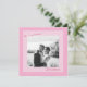 Pink wedding Save the Date card designed for a romantic spring or summer wedding. This playful photo announcement blends modern minimalist aesthetics with soft feminine color tones, perfect for the joyful, style-loving bride planning a chic garden celebration. Pair it with blush envelopes, calligraphy addressing, and floral wedding invitations for a bright and elegant stationery suite.