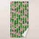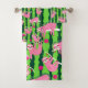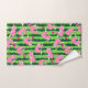 Cuts pink sloths on stripy green watermelon background. They wake up for pickleball. 🦥Bath Towel Set with pink pickleball motif