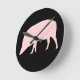 This awesome clock features a cartoon style pink pig. It has its head down ready to gobble up whatever food it can find. The background is black to show off the pig at its best.