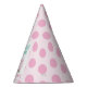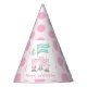 Celebrate your little piggy's birthday with these pink pig birthday hats!! This adorable design features three hand-painted cute, muddy pigs, ready to celebrate with pastel coloured balloons in purple, green, blue and yellow.