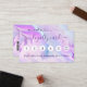 A trendy holographic background in pink, purple, blue.