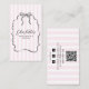 A cute Parisian style doodle ribbon on pink and white pinstripe, jewellery designer business card. Whimsical and cute! With QR code and social media.
