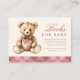 Pink Plaid Bear Baby Shower Books For Baby Enclosure Card