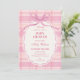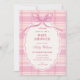 Pink plaid bow baby shower invitation