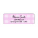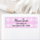 Return address labels in a cute style with feminine text on a pink buffalo plaid background. Customise by adding your name and address in the editing window.