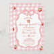 Pink Plaid Strawberry Coquette Bow Baby Shower Invitation, Something Berry Sweet Baby Shower Invite, Editable Gingham Baby Shower