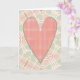 My original artwork featuring a graphic art elongated heart which is a conglomeration of vintage patterns recreated into a retro plaid style in pink tones. The heart is placed on an abstract arrow pattern for the background in peach pink and sage green faded tones. The inside states "I hope your day is full of love! Happy Valentine’s Day!". This card is a nice way to express your love for someone!
