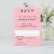 Collect your guests’ responses with this pink plain text portrait RSVP, a color for couples who see pink as a symbol of romance, love, and gentleness, and prefer a plain text design for easy reading. The fonts used are calligraphy, script and sans serif. Calligraphy and script fonts are used to enhance the style while the sans serif font is used to enhance readability and clarity. Customize it by typing the names of the bride and groom, RSVP details and meal choices. You can also change the contents or wordings in the design tool including the font style, font color and background color. Please check the appearance of the front and back sides after typing texts. If the appearance is pleasing to you, you can place your order now. If you need to resize or reposition the texts, please adjust in the design tool. To the bride and groom, congratulations on your engagement! Wishing you both a lifetime filled with love and happiness.