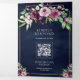 Pink Plum Floral Ampersand Navy QR Code Wedding Tri-Fold Invitation