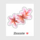 Pink plumeria shaped floral stickers. Three, pretty, light pink, Hawaiian flowers with orange centers make up this pretty sticker to use on scrapbook pages, in journals, on envelopes and packages, or anywhere a little pretty image is needed. Sheets come in many sizes.