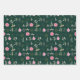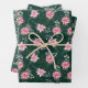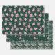 Pink Poinsettia Flowers on Dark Green Wrapping Paper Sheet