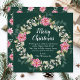 This fun and festive watercolor Christmas card can be personalised with your family name. It features a wreath with pink poinsettias and holly on a dark green background. The text combines handwritten script and serif fonts for an elegant and sophisticated look.