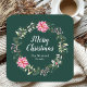 Pink Poinsettia Wreath Merry Christmas Square Paper Coaster