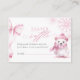Encourage guests to join a fun diaper raffle! Features winter snowflakes and a cute pink baby bear.