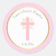 Pink Polka Dot Baptism with Cross and Gold Border Classic Round Sticker