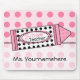 A mousepad featuring a pink background with pink polka dots. Illustration of matching pink crayon at centre. Label of crayon is white with black polka dots. Text on crayon reads "2nd Grade Teacher." Personalise with your name.