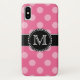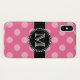 Pink polka dot pattern iPhone X mobile case that can be personalised with your name and monogram.