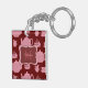 Pink Polka Dot Tea Set on Burgundy Personalised Key Ring