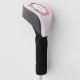 Pretty lady's golf club cover done in a pink on white polka dot pattern. Lovely graphics of pink flowers surround a pink and white text area, in the middle of the cover. Personalise the pink number to read what you want. Great gift idea. Matching putter cover is available.