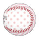 A feminine patterned baseball in pink and white polka dots and stripes with custom text that you can edit with your desired text. It makes a wonderful keepsake.