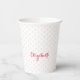 Custom, personalised, elegant dark pink typography script, fun cool stylish retro trendy light pink polka dots pattern background, classy, monogrammed, FDA approved for food contact and safety, ideal for cold and warm beverages alike, paper cups perfect for birthday parties, summer picnics, and events. Simply type in your name / kids name / family name / company name, to customise. Makes a great gift for birthday, graduation, fathers day, christmas, holidays, new years, wedding, marriage anniversary, valentines day, and more, for your loved ones, mum, dad, wife, husband, son, daughter, brother, sister, girlfriend, boyfriend, grandpa, grandma, friends and family.