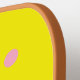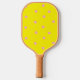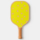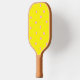 Pink polka dots on yellow pickleball paddle