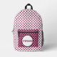 Add a pop of playful charm with this pink polka dots printed backpack. Perfect for school, travel, or everyday use, this lightweight and durable bag combines fun design with functionality. Personalise it with your name or initials to make it a stylish accessory that’s uniquely your