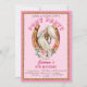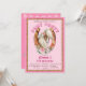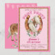 Pony birthday giddy up cowgirl cowboy party invitation template. Pink background, rope border, pony with pink roses in a horseshoe invitation for horses, ponies, equestrian themed birthdays.