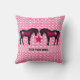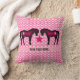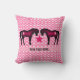 Pink pony personalised throw pillow, This cute pony cushion for kids has two pink ponies and a pink star, on a background of pink horse shoes and hearts. Very cute design for kids of anyone who loves ponies. Add name or text to the design.