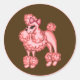 a pink poodle on a brown background decorates this sticker. The design is from an original illustration.