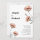 Vintage Pink poppies wildflowers floral wedding invitation with QR code. This invitation captures the romance of wildflowers, featuring delicate, vintage-inspired sketches of pink poppies flourishing in the upper right and bottom left corners. The artistic detail provides a beautiful frame for the key information, with the names of the soon-to-be-wed couple emphasized in bold typography, creating a striking focal point. And for added convenience, the reverse side of the invitation features a QR code, allowing your guests to easily scan and RSVP online, as well as access further details about your wedding.