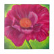 Pink Poppy Flower Closeup Acrylic Painting ceramic tile. This is an Acrylic Painting of One Big Pink Poppy Flower at the centre of vibrant green background, gradient to light green yellow, and slightly brightening towards the centre part .The colours are very vibrant and the way the gradient background fades from dark corners to lighter centre part, its shaping a bright yellowish aura around the flower itself which makes the hot pink colour stand out even more. This is a scan from my original art work at Serene Inanna Studio.com