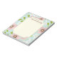 A trendy spring time pattern of whimsical greenery, pink poppies and white dogwood blossoms in soft neutral hues of adorn this pretty note pad. Personalised with your heading and name. Shown with a pretty minty aqua teal coloured background to give it a feminine and modern vintage look. Perfect for writing notes to school, making to-do lists, or leaving love notes.