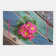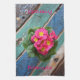 These bright multicolored kitchen towels feature a vibrant pink and yellow Primrose plant in full bloom set upon aged and weathered boat boards of blue, aqua and green. The towel is a colourful floral that is cheerful with a rustic charm. The Primrose is a beloved flower that makes its home in woodlands, but will truly be welcome in yours or as a beautiful gift for a gardener. This towel is 1 of 2 coordinating designs.