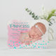 Pretty pink and teal blue confetti princess birth announcements. This elegant pink and teal blue birth announcement is easily customised for your event by simply adding your photo and details in the font style, colour and wording of your choice.