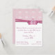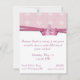 Sweet pink and white birthday invitation, with graphics of pink eyelet lace, at the top and back of the invitation. A pink double ribbon cuts across the card, with a pink shinny crown decorating it. Personalise the pink text, for your Princess's birthday party.
