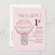 Pink Princess Elephant Balloon Dots 1st Birthday Invitation Postcard