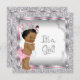 Adorable sweet pink and silver princess ethnic African American baby shower invitation with cute baby girl on a beautiful silver and pink glitter background. This elegant black and pink princess baby shower invitation is easily customised for your event. You can delete the text and add your own in the font style and colour of your choice.