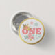 Pink Princess "One" Crown Baby Girl First Birthday 3 Cm Round Badge