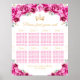 This elegant and glamourous Quinceañera table seating chart features a gold crown and beautiful hot pink floral arrangements with gold confetti. The text combines handwritten script and modern sans serif fonts for a classy and sophisticated look.