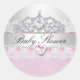 Baby Shower Sticker. Pink & silver with lace & tiara. Exclusive Zazzle. Customise with your own details. PLEASE NOTE all flat images! They Do NOT have real lace, Diamonds Jewels or real Bows!!