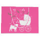 Include the big brother or sister fur baby in the celebration with this adorable pug dog baby shower design! Perfect for a puppy lover with a baby on the way. The pug is next to an adorable vintage carriage. The pink background makes it perfect for a baby girl! Also a great design for a puppy shower!