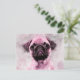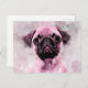 Pink Pug Dog Watercolor Portrait 02 Postcard